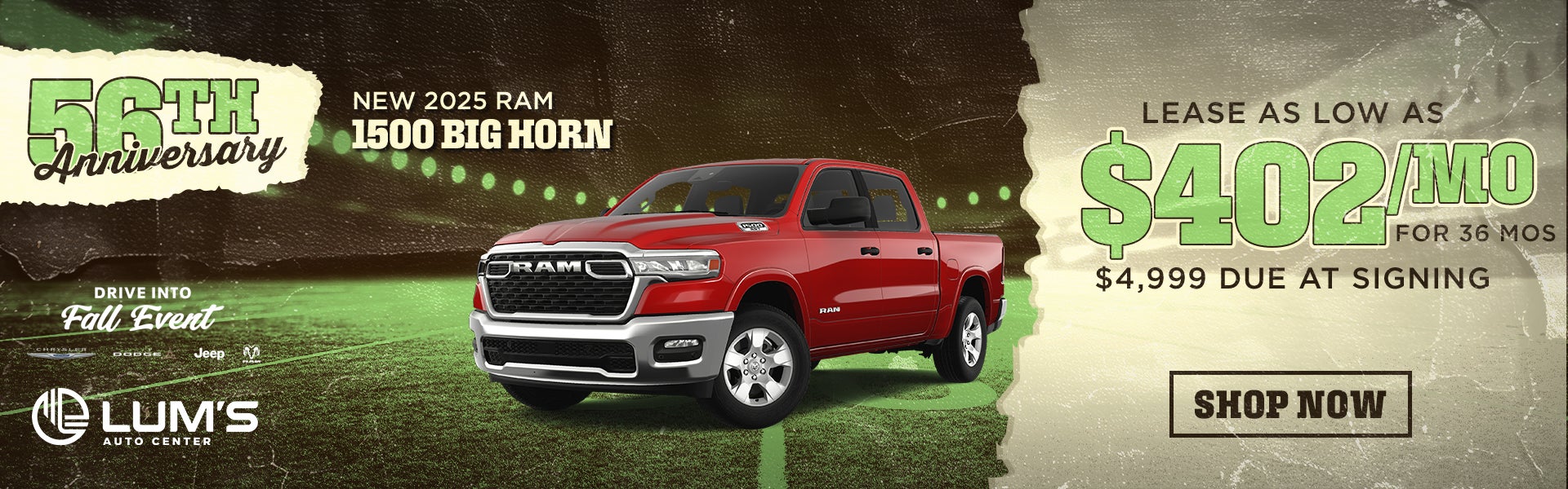 Huddle up for unbeatable deals at Lum’s Auto Center! We’re throwing a Tailgate Party to celebrate 56 years of serving our amazing community — and you’re invited!