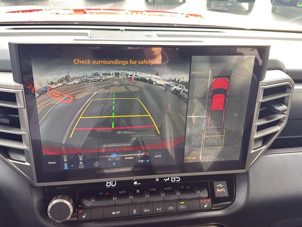 This 2025 Toyota Tundra is pure luxury with a heated steering wheel. The Toyota Tundra comes equipped with Android Auto for seamless smartphone integration on the road. It offers Apple CarPlay for seamless connectivity. See what's behind you with the back up camera on it. Bluetooth® technology is built into this 2025 Toyota Tundra , keeping your hands on the steering wheel and your focus on the road. It keeps you comfortable with Auto Climate. The vehicle enhances safety with a blind spot monitor, alerting drivers to potential dangers in adjacent lanes. The leather seats in this Toyota Tundra are a must for buyers looking for comfort, durability, and style. The Toyota Tundra gleams with a flashy red exterior. This vehicle has a V6, 3.5L (3445 cc) high output engine. Greater towing safety becomes standard with the installed trailer brake. Maintaining a stable interior temperature in the Toyota Tundra is easy with the climate control system.