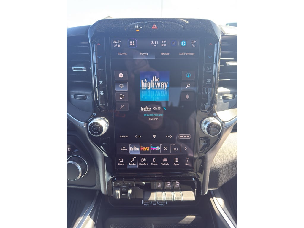 Never get into a cold vehicle again with the remote start feature on it. This unit is equipped with the latest generation of XM/Sirius Radio. Keep your hands warm all winter with a heated steering wheel in the vehicle . The installed navigation system will keep you on the right path. The vehicle features a hands-free Bluetooth® phone system. This model offers Android Auto for seamless smartphone integration. Protect this 1/2 ton pickup from unwanted accidents with a cutting edge backup camera system. This vehicle's Forward Collision Warning system alerts the driver to potential front-end collisions, enhancing safety. This model offers Automatic Climate Control for personalized comfort. The rear parking assist technology on this vehicle will put you at ease when reversing. The system alerts you as you get closer to an obstruction. This 2026 Ram 1500 offers Apple CarPlay for seamless connectivity. This unit has automated speed control that adjusts to maintain a safe following distance, enhancing highway driving convenience.