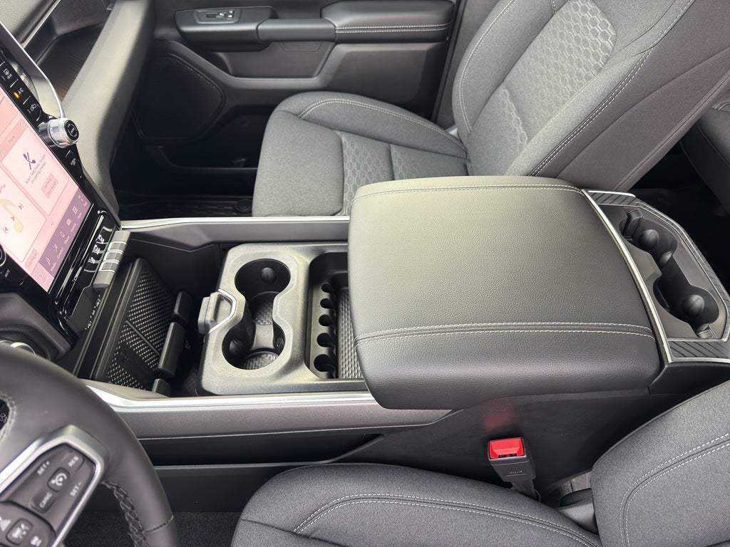 This model features a hands-free Bluetooth® phone system. This 2026 Ram 1500 has auto-adjust speed for safe following. See what's behind you with the back up camera on this unit. The vehicle comes equipped with Android Auto for seamless smartphone integration on the road. Apple CarPlay: Seamless smartphone integration for this Ram 1500 - stay connected and entertained on the go! This 2026 Ram 1500 's Forward Collision Warning feature alerts drivers to potential front-end collisions. The installed navigation system will keep you on the right path. Never get into a cold vehicle again with the remote start feature on this unit. The rear parking assist technology on this 1/2 ton pickup will put you at ease when reversing. The system alerts you as you get closer to an obstruction. This Ram 1500 offers Automatic Climate Control for personalized comfort. The Ram 1500 is pure luxury with a heated steering wheel.