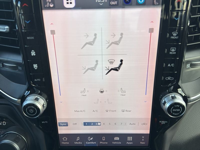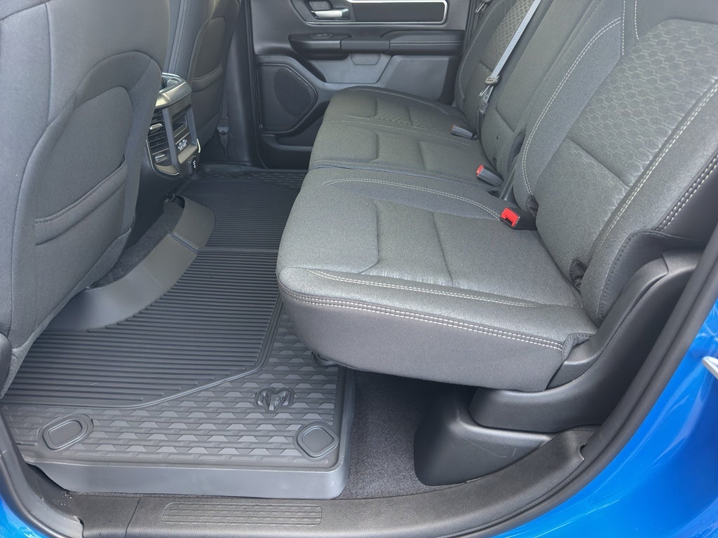 Quick Order Package 23Z Big Horn. Big Horn Level 2 Equipment Group: Google Android Auto; SiriusXM Radio Service; USB Host Flip; Power Adjustable Pedals; Leather Wrapped Steering Wheel; Integrated Voice Command with Bluetooth®; 12" Touchscreen Display; Glove Box Lamp; Auto Power-Folding Mirrors; 115V Auxiliary Rear Power Outlet; Media Hub with 2 Charge Only USBs; Heated Front Seats; Security Alarm; Black Premium Power Mirrors; Apple CarPlay; Premium Overhead Console; 9 Amplified Speakers with Subwoofer; Disassociated Touchscreen Display; Body Color Fender Flares; Remote Tailgate Release; 115V Auxiliary Power Outlet; LED Dome Lamp with On/off Switch; Universal Garage Door Opener; 2nd Row in Floor Storage Bins; Sun Visors with Illuminated Vanity Mirrors; LED Footwell Lighting; Rear Window Defroster; Integrated Center Stack Radio; Rear View Auto Dim Mirror; Rear Power Sliding Window; Connectivity - US/Canada; GPS Navigation; 4G LTE Wi-Fi Hot Spot; GPS Antenna Input; Overhead LED Lamps; Exterior Mirrors with Heating Element; Auto Dim Exterior Driver Mirror; SiriusXM with 360L; Global Telematics Box Module; Connected Travel and Traffic Services; Heated Steering Wheel; Configurable Drive Mode; 400W Inverter; HD Radio; Deluxe Cloth Bucket Seats; Uconnect 5 Navigation with 12.0" Display Radio; Exterior Mirrors with Supplemental Signals; Steering Wheel Mounted Audio Controls; Exterior Mirrors Courtesy Lamps; Air Conditioning ATC with Dual Zone Control; Cluster 7.0" TFT Color Display; Convex Wide-Angle Exterior Mirror Insert. Night Edition: 275/55R20 OWL All Season Tires; Accent Color Premium Power Mirrors; Exterior Mirrors with Supplemental Signals; Black Headlamp Bezels; Exterior Mirrors Courtesy Lamps; Grille Black Surround Black Mesh; Auto Power-Folding Mirrors; Exterior Mirrors with Heating Element; 20" X 9.0" Aluminum Painted Clad Wheels; Auto Dim Exterior Driver Mirror; Black Exterior Truck Badging; Anti-Spin Differential Rear Axle; Accent Color Door Handles; Accent Color Tailgate Handle; Black Interior Accents; Dual Exhaust with Black Tips; Body Color Front Bumper; Convex Wide-Angle Exterior Mirror Insert; Body Color Rear Bumper with Step Pads; Black Tail Lamp Bezels; RAM Grille Badge - Black; Black Painted Exterior Mirrors Caps. Bed Utility Group: MOPAR Spray in Bedliner; MOPAR Deployable Bed Step; MOPAR 4 Adjustable Cargo Tie-Down Hooks; Pick-Up Box Lighting; Exterior 115V AC Outlet. 9 Amplified Speakers with Subwoofer. Anti-Spin Differential Rear Axle. Trailer Brake Control. Hydro Blue Pearlcoat. MyFlexCare Service Plan. MOPAR Front and Rear Rubber Floor Mats. **Equipment listed is based on original vehicle build and subject to change. Please confirm the accuracy of the included equipment by calling the dealer prior to purchase.**