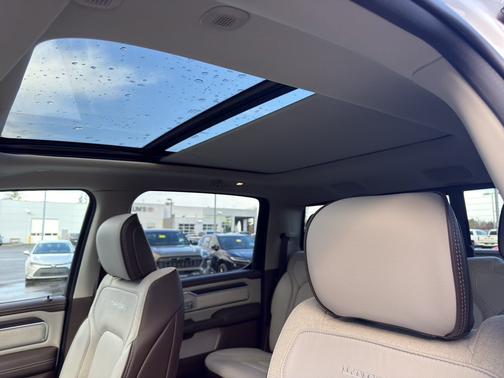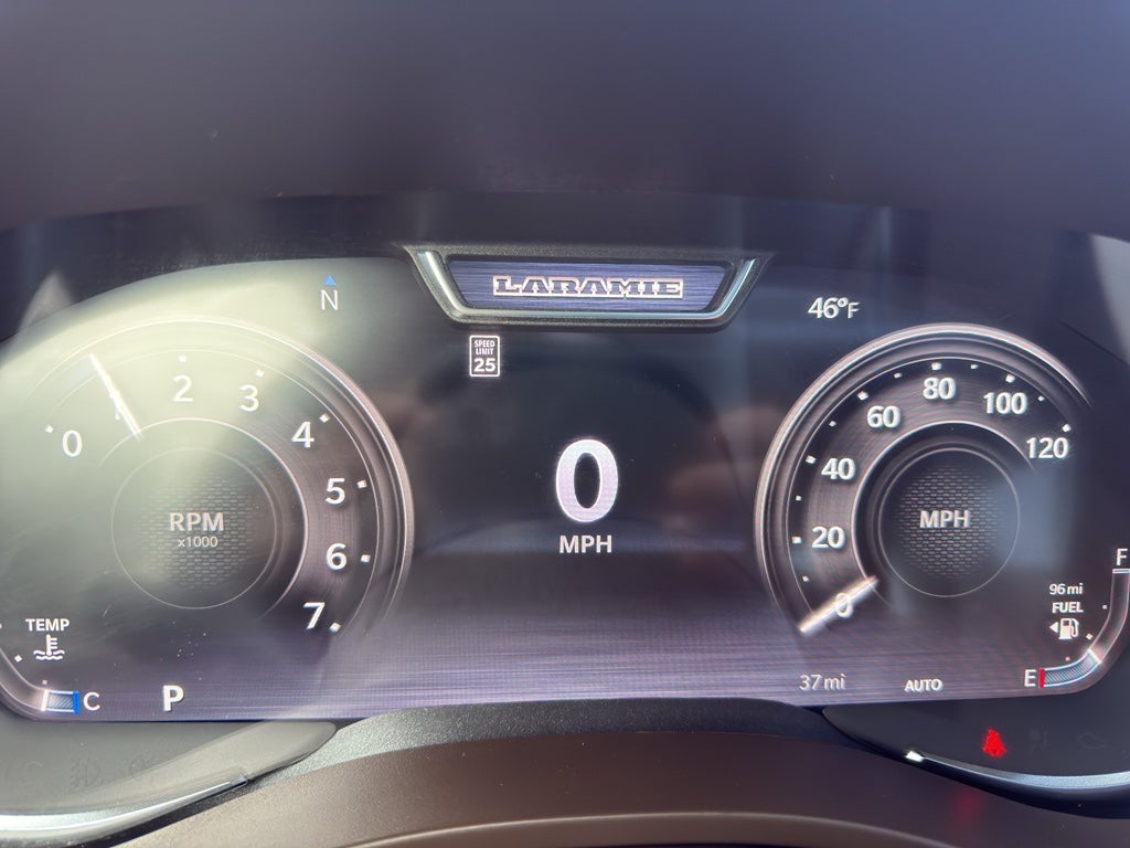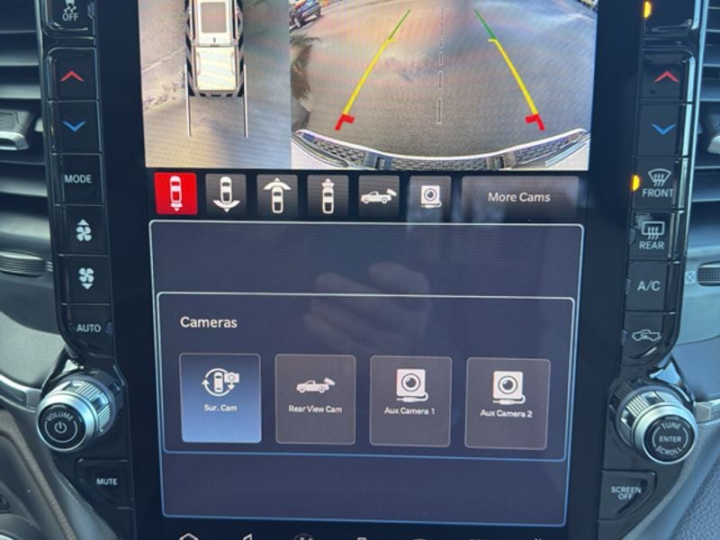 Advanced Safety Group II: Exterior Mirrors Approach Lamps; Active Driving Assist System; Surround View Camera System; Evasive Steer Assist; Drowsy Driver Detection; Intersection Collision Assist System; Traffic Sign Recognition; 12-Way/1-way Trailer Connector. Quick Order Package 21H Laramie. Laramie Level 2 Equipment Group: SiriusXM Radio Service; USB Host Flip; Rain Sensitive Windshield Wipers; 14.4" Touchscreen Display; Integrated Center Stack Radio; Front Passenger Interactive Display; Integrated Voice Command with Bluetooth®; Connectivity - US/Canada; Uconnect 5 Nav with 14.4" Display; GPS Navigation; 4G LTE Wi-Fi Hot Spot; Harman/kardon 19 Speaker Premium Sound; SiriusXM with 360L; Connected Travel and Traffic Services; Cluster 12" TFT Color Display; Power Tailgate. Bed Utility Group: MOPAR Spray in Bedliner; MOPAR Deployable Bed Step; MOPAR 4 Adjustable Cargo Tie-Down Hooks; Exterior 115V AC Outlet. Laramie Preferred Package: Accent Color Premium Power Mirrors; Exterior Mirrors with Supplemental Signals; Power Deployable Running Boards; Exterior Mirrors Courtesy Lamps; RAM Grille Badge - Chrome; Auto Power-Folding Mirrors; Grille Surround 3 Body Color Tex 4 Chrome; Exterior Mirrors with Heating Element; Auto Dim Exterior Driver Mirror; Trailer Brake Control; Exterior Mirrors with Memory; Tow Hooks; Body Color Front Bumper; Convex Wide-Angle Exterior Mirror Insert; Dual-Pane Panoramic Sunroof; Body Color Rear Bumper with Step Pads; Black Painted Exterior Mirrors Caps. 22" X 9" Forged Aluminum Wheels. Dual-Pane Panoramic Sunroof. Power Deployable Running Boards. Anti-Spin Differential Rear Axle. Trailer Brake Control. MOPAR Front and Rear Rubber Floor Mats. 3.92 Rear Axle Ratio. **Equipment listed is based on original vehicle build and subject to change. Please confirm the accuracy of the included equipment by calling the dealer prior to purchase.**