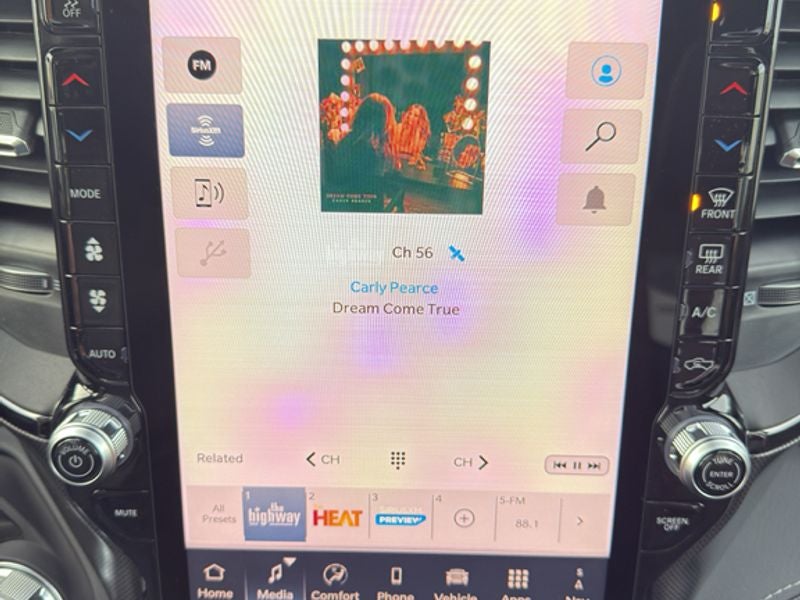 Quick Order Package 22M Limited. Limited Level A Equipment Group: Google Android Auto; SiriusXM Radio Service; USB Host Flip; Surround View Camera System; Integrated Center Stack Radio; LED CHMSL Lamp; Tri-Fold Tonneau Cover; Integrated Voice Command with Bluetooth®; Connectivity - US/Canada; Traffic Sign Recognition; GPS Navigation; 4G LTE Wi-Fi Hot Spot; RamBox Cargo Management System; GPS Antenna Input; Hands-Free Active Driving Assist System; SiriusXM with 360L; Global Telematics Box Module; Head Up Display; Connected Travel and Traffic Services; Evasive Steer Assist; Drowsy Driver Detection; Exterior 115V AC Outlet; Intersection Collision Assist System; Apple CarPlay; Disassociated Touchscreen Display; HD Radio; Smartphone as a Key Capable; 14.4" Touchscreen Display; Uconnect 5 Nav with 14.4" Display; 240 Amp Alternator; Digital Rearview Mirror; 12-Way/1-way Trailer Connector. Night Edition: 285/45R22XL BSW All Season Tires; Accent Color Premium Power Mirrors; Exterior Mirrors with Supplemental Signals; Black Headlamp Bezels; Sport Performance Hood; 22" X 9" Premium Black Aluminum Wheels; Exterior Mirrors Courtesy Lamps; Pirelli Brand Tires; Auto Power-Folding Mirrors; Exterior Mirrors with Heating Element; Auto Dim Exterior Driver Mirror; Black Exterior Truck Badging; Black Day Light Opening Moldings; Accent Color Door Handles; Accent Color Tailgate Handle; Exterior Mirrors with Memory; Dual Exhaust with Black Tips; Body Color Front Bumper; Convex Wide-Angle Exterior Mirror Insert; Black Grille Surround Texture 7 Black; Body Color Rear Bumper with Step Pads; Black Tail Lamp Bezels; RAM Grille Badge - Black; Black Painted Exterior Mirrors Caps. Dual-Pane Panoramic Sunroof. Tri-Fold Tonneau Cover. Trailer Brake Control. Granite Crystal Met CC. **Equipment listed is based on original vehicle build and subject to change. Please confirm the accuracy of the included equipment by calling the dealer prior to purchase.**