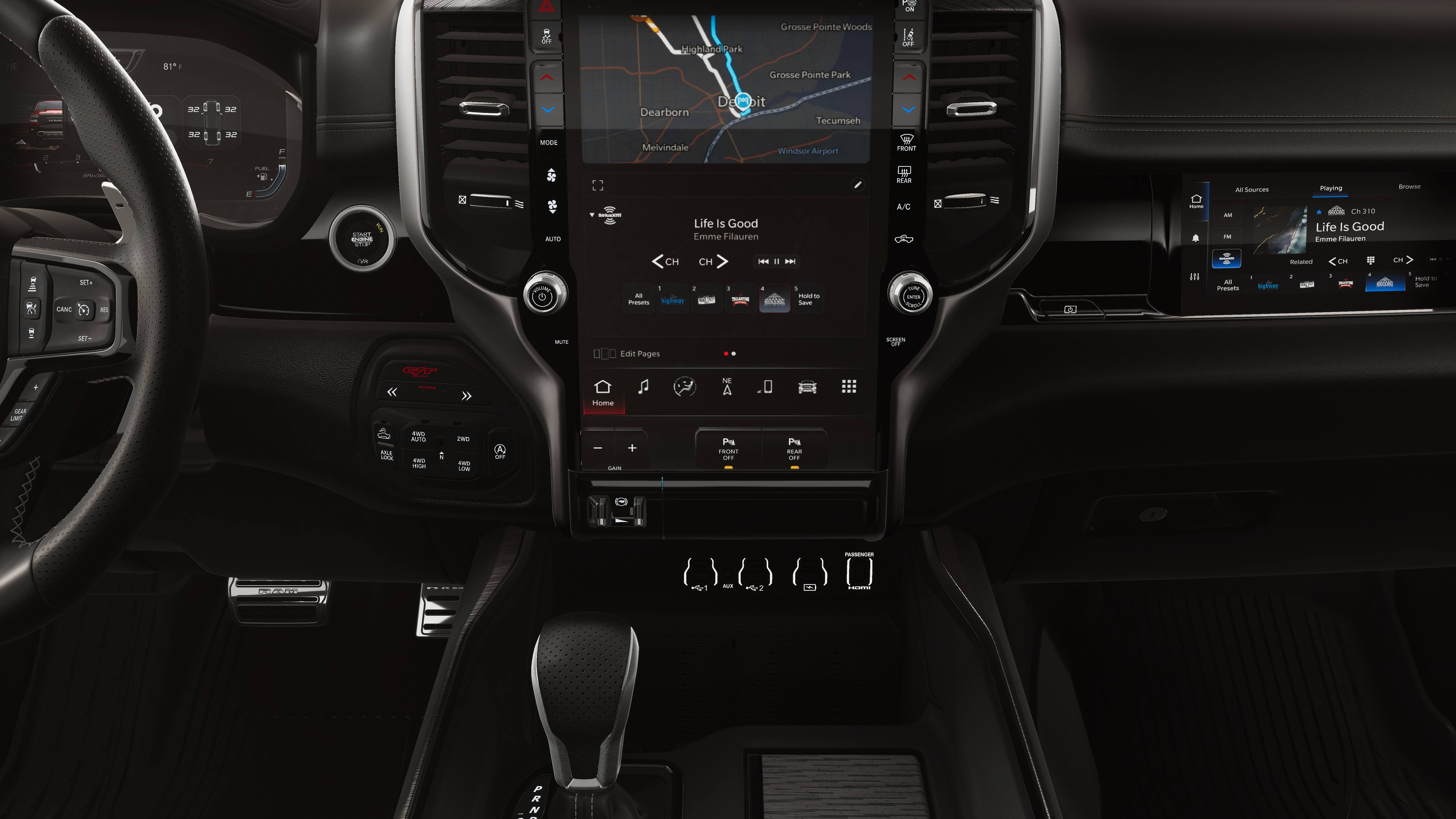 - 4-Wheel Disc Brakes w/4-Wheel ABS, Front Vented Discs, Brake Assist, Hill Descent Control, Hill Hold Control and Electric Parking Brake