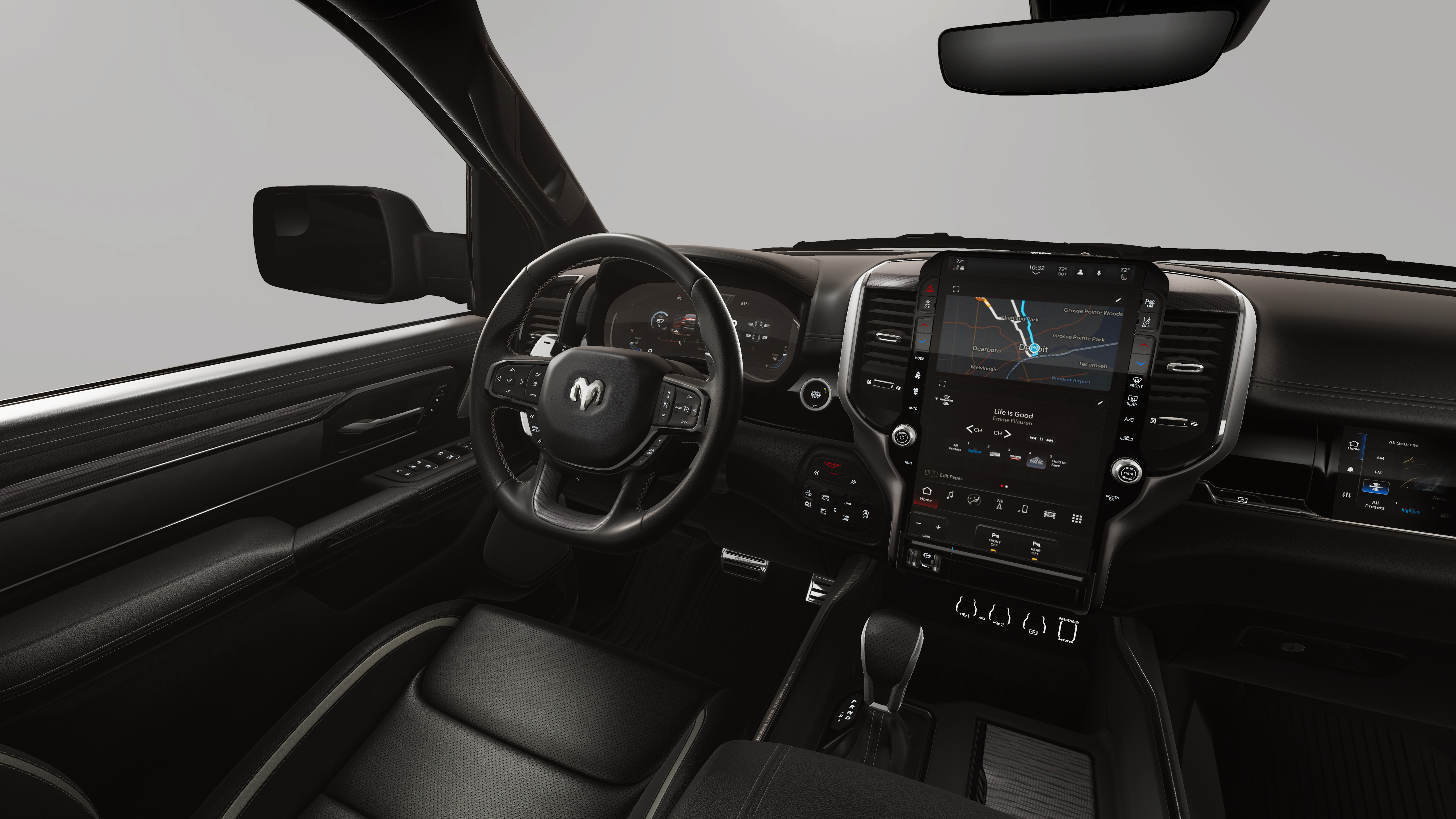 G/T Package: Floor Console; Under Seat Lighting; Leather/vinyl Bucket Seats; G/T Decal; Leather Wrapped Shift Knob; Leather-Wrapped Steering Wheel; Steering Wheel Mounted Shift Control; G/T Exhaust; GT Interior Theme; MOPAR Bright Pedal Kit; Performance Pages. Bed Utility Group: MOPAR Spray in Bedliner; MOPAR Deployable Bed Step; MOPAR 4 Adjustable Cargo Tie-Down Hooks; Exterior 115V AC Outlet. Quick Order Package 21W Rebel. Rebel Level 2 Equipment Group: Google Android Auto; SiriusXM Radio Service; USB Host Flip; Rear Window Defroster; Rain Sensitive Windshield Wipers; Integrated Center Stack Radio; Power Adjustable Pedals with Memory; Front Passenger Interactive Display; Integrated Voice Command with Bluetooth®; Connectivity - US/Canada; Auto Power-Folding Mirrors; GPS Navigation; 4G LTE Wi-Fi Hot Spot; 115V Auxiliary Rear Power Outlet; GPS Antenna Input; Media Hub with 2 Charge Only USBs; Exterior Mirrors with Heating Element; Proximity Approach/departure Lamps; Auto Dim Exterior Driver Mirror; SiriusXM with 360L; Accent Color Door Handles; Global Telematics Box Module; Connected Travel and Traffic Services; Heated Second Row Seats; Power Adjust 8-Way Front Passenger Seat; Security Alarm; Apple CarPlay; Black Painted Exterior Mirrors Caps; Off-Road Information Pages; Exterior Mirrors Approach Lamps; Disassociated Touchscreen Display; HD Radio; Smartphone as a Key Capable; 14.4" Touchscreen Display; Accent Color Premium Power Mirrors; Dual Wireless Charging Pad; Exterior Mirrors with Supplemental Signals; Exterior Mirrors Courtesy Lamps; Uconnect 5 Nav with 14.4" Display; Harman/kardon 19 Speaker Premium Sound; 2-Door Passive Entry. Front Door Locks; Accent Color Tailgate Handle; Exterior Mirrors with Memory; Driver Seat Memory; Power Tailgate; Convex Wide-Angle Exterior Mirror Insert; Radio/driver Seat/mirrors/pedals Memory. Dual-Pane Panoramic Sunroof. Trailer Brake Control. Granite Crystal Met CC. Granite Crystal Met CC. Rear Wheelhouse Liners. **Equipment listed is based on original vehicle build and subject to change. Please confirm the accuracy of the included equipment by calling the dealer prior to purchase.**
