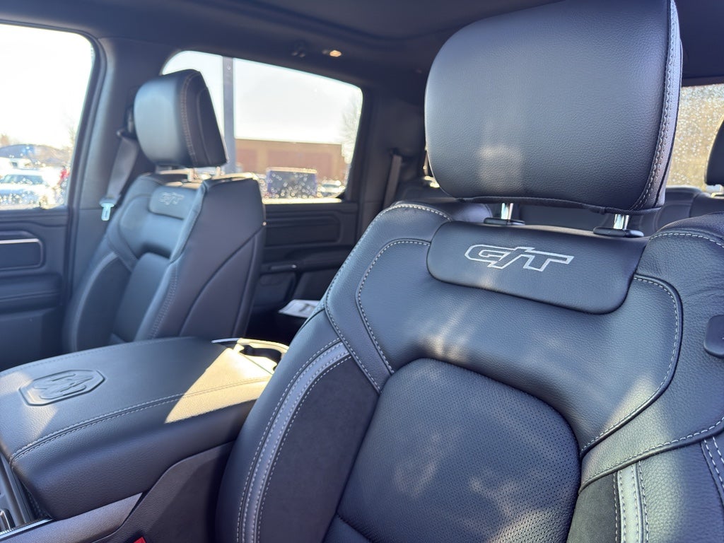 G/T Package: Floor Console; Under Seat Lighting; Leather/vinyl Bucket Seats; G/T Decal; Leather Wrapped Shift Knob; Leather-Wrapped Steering Wheel; Steering Wheel Mounted Shift Control; G/T Exhaust; GT Interior Theme; MOPAR Bright Pedal Kit; Performance Pages. Bed Utility Group: MOPAR Spray in Bedliner; MOPAR Deployable Bed Step; MOPAR 4 Adjustable Cargo Tie-Down Hooks; Exterior 115V AC Outlet. Quick Order Package 21W Rebel. Rebel Level 2 Equipment Group: Google Android Auto; SiriusXM Radio Service; USB Host Flip; Rear Window Defroster; Rain Sensitive Windshield Wipers; Integrated Center Stack Radio; Power Adjustable Pedals with Memory; Front Passenger Interactive Display; Integrated Voice Command with Bluetooth®; Connectivity - US/Canada; Auto Power-Folding Mirrors; GPS Navigation; 4G LTE Wi-Fi Hot Spot; 115V Auxiliary Rear Power Outlet; GPS Antenna Input; Media Hub with 2 Charge Only USBs; Exterior Mirrors with Heating Element; Proximity Approach/departure Lamps; Auto Dim Exterior Driver Mirror; SiriusXM with 360L; Accent Color Door Handles; Global Telematics Box Module; Connected Travel and Traffic Services; Heated Second Row Seats; Power Adjust 8-Way Front Passenger Seat; Security Alarm; Apple CarPlay; Black Painted Exterior Mirrors Caps; Off-Road Information Pages; Exterior Mirrors Approach Lamps; Disassociated Touchscreen Display; HD Radio; Smartphone as a Key Capable; 14.4" Touchscreen Display; Accent Color Premium Power Mirrors; Dual Wireless Charging Pad; Exterior Mirrors with Supplemental Signals; Exterior Mirrors Courtesy Lamps; Uconnect 5 Nav with 14.4" Display; Harman/kardon 19 Speaker Premium Sound; 2-Door Passive Entry. Front Door Locks; Accent Color Tailgate Handle; Exterior Mirrors with Memory; Driver Seat Memory; Power Tailgate; Convex Wide-Angle Exterior Mirror Insert; Radio/driver Seat/mirrors/pedals Memory. Dual-Pane Panoramic Sunroof. Trailer Brake Control. Granite Crystal Met CC. Granite Crystal Met CC. Rear Wheelhouse Liners. **Equipment listed is based on original vehicle build and subject to change. Please confirm the accuracy of the included equipment by calling the dealer prior to purchase.**