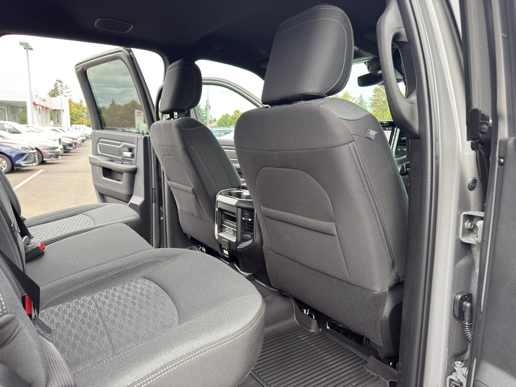 Quick Order Package 24Z Big Horn. Night Edition: Firestone Brand Tires; Gloss Black Nostrils/mic Black Grille; LT285/60R20E OWL On/off Road Tires; Black Exterior Truck Badging; 20" X 8.0" Black Painted Aluminum Wheels; Body Color Grille-Surround; Black Interior Accents; Black Wheel Center Hub; Painted Front Bumper; Painted Rear Bumper. Big Horn Level 2 Plus Equipment Group: Google Android Auto; SiriusXM Radio Service; Surround View Camera System; Blind Spot and Cross Path Detection; For Details. Visit DriveUconnect.com; Power Adjustable Pedals; For More Info. Call 800-643-2112; Integrated Voice Command with Bluetooth®; Emergency Vehicle Alert System (EVAS); 12" Touchscreen Display; Glove Box Lamp; Auto Power-Folding Mirrors; Footwell Courtesy Lamp; 115V Auxiliary Rear Power Outlet; Media Hub with 2 Charge Only USBs; Anti-Spin Differential Rear Axle; Drowsy Driver Detection; Heated Front Seats; Mirror Running Lights; MOPAR Deployable Bed Step; Exterior 115V AC Outlet; Alexa Built-In; Apple CarPlay; Premium Cloth Bucket Seats; Power-Adjustable Convex Aux Mirrors; Active Lane Management System; Forward and Reverse Utility Lights; Locking Lower Glove Box; Remote Start System; 9 Alpine Speakers with Subwoofer; Disassociated Touchscreen Display; Dual Wireless Charging Pad; Trailer Tire Pressure Monitoring System; Dual Glove Boxes; 115-Volt Auxiliary Front Power Outlet; Universal Garage Door Opener; 2nd Row in Floor Storage Bins; Sun Visors with Illuminated Vanity Mirrors; Center Stop Lamp with Cargo View Camera; Rain Sensitive Windshield Wipers; Rear View Auto Dim Mirror; Rear Power Sliding Window; Rear Dome with On/off Switch Lamp; LED Bed Lighting; Connectivity - US/Canada; Traffic Sign Recognition; GPS Navigation; 4G LTE Wi-Fi Hot Spot; Adaptive Steering System; GPS Antenna Input; Exterior Mirrors with Heating Element; SiriusXM with 360L; Global Telematics Box Module; Connected Travel and Traffic Services; Heated Steering Wheel; Foam Bottle Insert (door Trim Panel); Black Exterior Mirrors; Dampened Tailgate; Trailer Reverse Guidance; Big Horn Instrument Panel Badge; Off-Road Info Pages; Selectable Tire Fill Alert; Trailer Tow Pages; 400W Inverter; HD Radio; Uconnect 5 Navigation with 12.0" Display Radio; Power Heated Folding Telescopic Mirrors; Exterior Mirrors with Supplemental Signals; Steering Wheel Mounted Audio Controls; Exterior Mirrors Courtesy Lamps; Air Conditioning ATC with Dual Zone Control; MOPAR Spray in Bedliner; Auto High Beam Headlamp Control; Cluster 7.0" TFT Color Display; Power Adjust Mirrors; Luxury Steering Wheel; Power Telescoping Mirrors. Blind Spot and Cross Path Detection. 5th Wheel/gooseneck Towing Prep Group. Anti-Spin Differential Rear Axle. Premium Cloth Bucket Seats. Remote Start System. MOPAR Front and Rear Rubber Floor Mats. Rear Wheelhouse Liners. Power 2-Way Driver Lumbar Adjust. **Equipment listed is based on original vehicle build and subject to change. Please confirm the accuracy of the included equipment by calling the dealer prior to purchase.**