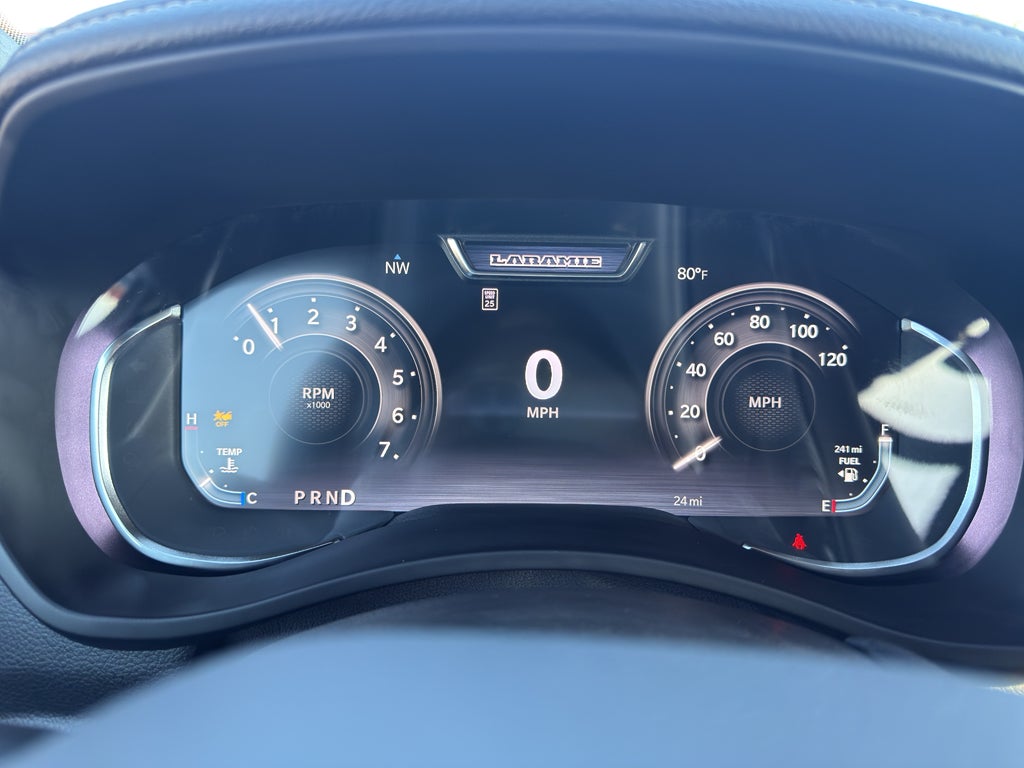 Laramie Level 1 Plus Equipment Group: Center Stop Lamp with Cargo View Camera; Rain Sensitive Windshield Wipers; Power Adjustable Pedals with Memory; LED Bed Lighting; Traffic Sign Recognition; Auto Power-Folding Mirrors; Adaptive Steering System; Exterior Mirrors with Heating Element; Auto Dim Exterior Mirror; Anti-Spin Differential Rear Axle; Heated Second Row Seats; Drowsy Driver Detection; Mirror Running Lights; MOPAR Deployable Bed Step; Foam Bottle Insert (door Trim Panel); Power-Adjustable Convex Aux Mirrors; Active Lane Management System; Forward and Reverse Utility Lights; Leather Trimmed Bucket Seats; Power Heated Fold Telescopic Mirrors with Memory; Exterior Mirrors with Supplemental Signals; Exterior Mirrors Courtesy Lamps; MOPAR Spray in Bedliner; Remote Tailgate Release; Auto High Beam Headlamp Control; Chrome Exterior Mirrors; Exterior Mirrors with Memory; Power Adjust Mirrors; 2nd Row in Floor Storage Bins; Power Telescoping Mirrors; Auto Dim Exterior Passenger Mirror; Auto Adjust in Reverse Exterior Mirrors. Quick Order Package 2UH Laramie. Night Edition: Firestone Brand Tires; LT285/60R20E OWL On/off Road Tires; Black Exterior Truck Badging; 20" X 8.0" Black Painted Aluminum Wheels; Gloss Black Grille Billets/accents; Body Color Grille-Surround; Sport Performance Hood; Black Exterior Mirrors; Black Wheel Center Hub. Towing Technology Group: Surround View Camera System; Trailer Tire Pressure Monitoring System; Trailer Reverse Guidance. Power Sunroof. Painted Flat Wheel-To-wheel Side Steps. Leather Trimmed Bucket Seats. Center Stop Lamp with Cargo View Camera. **Equipment listed is based on original vehicle build and subject to change. Please confirm the accuracy of the included equipment by calling the dealer prior to purchase.**