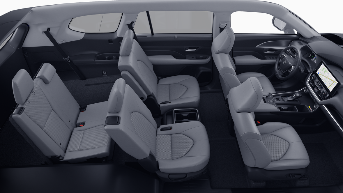 - 7-passenger seating with second-row fold-down captain's chairs and fold-down inboard armrests, adjustable headrests and two cup holders mounted on the floor; and 60/40 split, fold-down third-row seats with sliding headrests and recline function