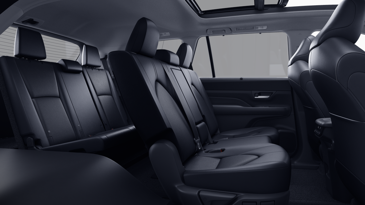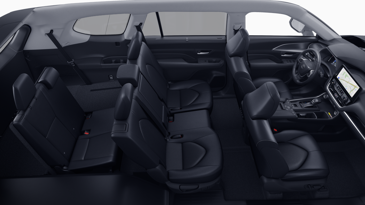 - 7-passenger seating with second-row fold-down captain's chairs and fold-down inboard armrests, adjustable headrests and two cup holders mounted on the floor; and 60/40 split, fold-down third-row seats with sliding headrests and recline function