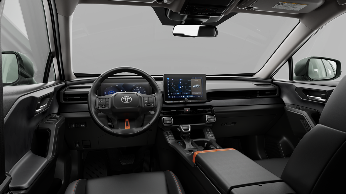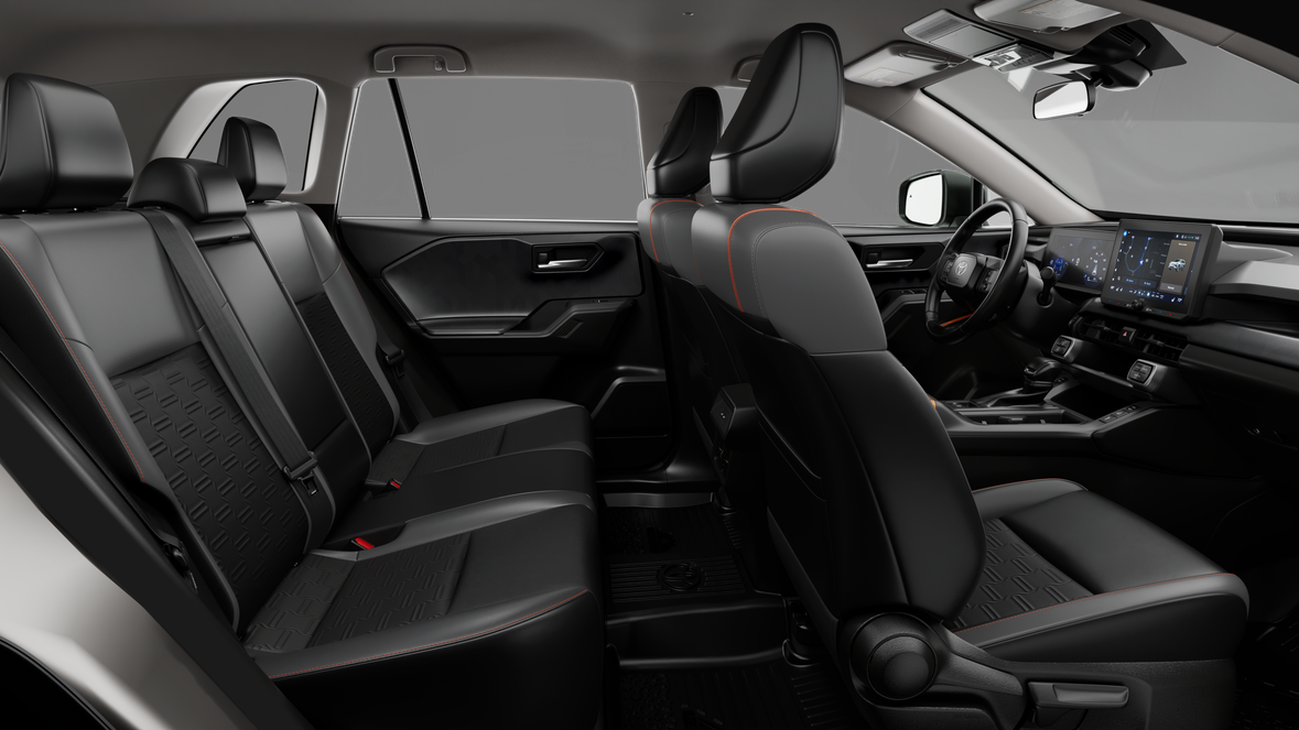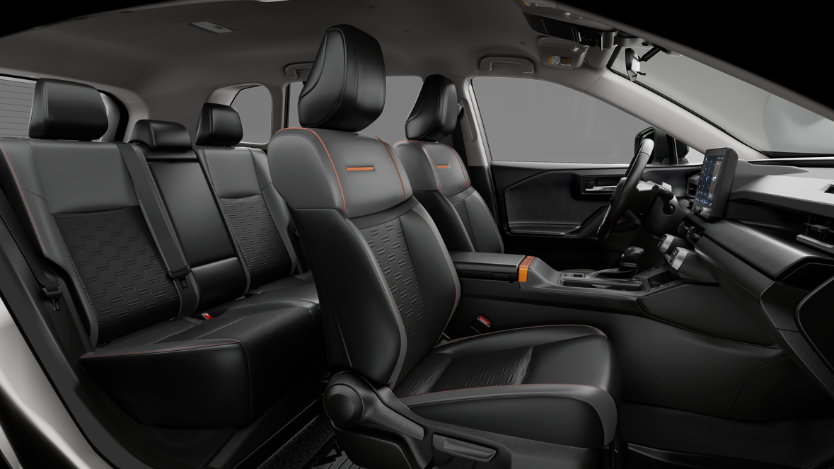 - Uniquely patterned perforated soft-touch door and dash panels with interior red-orange accents
