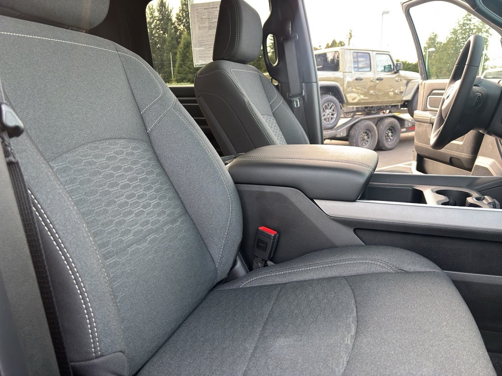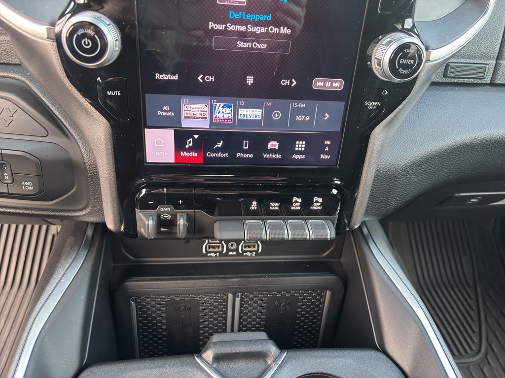 Quick Order Package 2UZ Big Horn. Night Edition: Firestone Brand Tires; Gloss Black Nostrils/mic Black Grille; LT285/60R20E OWL On/off Road Tires; Black Exterior Truck Badging; 20" X 8.0" Black Painted Aluminum Wheels; Body Color Grille-Surround; Black Interior Accents; Black Wheel Center Hub; Painted Front Bumper; Painted Rear Bumper. Big Horn Level 2 Plus Equipment Group: Google Android Auto; SiriusXM Radio Service; Surround View Camera System; Blind Spot and Cross Path Detection; For Details. Visit DriveUconnect.com; Power Adjustable Pedals; For More Info. Call 800-643-2112; Integrated Voice Command with Bluetooth®; Emergency Vehicle Alert System (EVAS); 12" Touchscreen Display; Glove Box Lamp; Auto Power-Folding Mirrors; Footwell Courtesy Lamp; 115V Auxiliary Rear Power Outlet; Media Hub with 2 Charge Only USBs; Anti-Spin Differential Rear Axle; Drowsy Driver Detection; Heated Front Seats; Mirror Running Lights; MOPAR Deployable Bed Step; Exterior 115V AC Outlet; Alexa Built-In; Apple CarPlay; Premium Cloth Bucket Seats; Power-Adjustable Convex Aux Mirrors; Active Lane Management System; Forward and Reverse Utility Lights; Locking Lower Glove Box; Remote Start System; 9 Alpine Speakers with Subwoofer; Disassociated Touchscreen Display; Dual Wireless Charging Pad; Trailer Tire Pressure Monitoring System; Dual Glove Boxes; 115-Volt Auxiliary Front Power Outlet; Universal Garage Door Opener; 2nd Row in Floor Storage Bins; Sun Visors with Illuminated Vanity Mirrors; Center Stop Lamp with Cargo View Camera; Rain Sensitive Windshield Wipers; Rear View Auto Dim Mirror; Rear Power Sliding Window; Rear Dome with On/off Switch Lamp; LED Bed Lighting; Connectivity - US/Canada; Traffic Sign Recognition; GPS Navigation; 4G LTE Wi-Fi Hot Spot; Adaptive Steering System; GPS Antenna Input; Exterior Mirrors with Heating Element; SiriusXM with 360L; Global Telematics Box Module; Connected Travel and Traffic Services; Heated Steering Wheel; Foam Bottle Insert (door Trim Panel); Black Exterior Mirrors; Dampened Tailgate; Trailer Reverse Guidance; Big Horn Instrument Panel Badge; Off-Road Info Pages; Selectable Tire Fill Alert; Trailer Tow Pages; 400W Inverter; HD Radio; Uconnect 5 Navigation with 12.0" Display Radio; Power Heated Folding Telescopic Mirrors; Exterior Mirrors with Supplemental Signals; Steering Wheel Mounted Audio Controls; Exterior Mirrors Courtesy Lamps; Air Conditioning ATC with Dual Zone Control; MOPAR Spray in Bedliner; Auto High Beam Headlamp Control; Cluster 7.0" TFT Color Display; Power Adjust Mirrors; Luxury Steering Wheel; Power Telescoping Mirrors. 5th Wheel/gooseneck Towing Prep Group. Blind Spot and Cross Path Detection. Anti-Spin Differential Rear Axle. Premium Cloth Bucket Seats. Remote Start System. MOPAR Front and Rear Rubber Floor Mats. Rear Wheelhouse Liners. Power 2-Way Driver Lumbar Adjust. **Equipment listed is based on original vehicle build and subject to change. Please confirm the accuracy of the included equipment by calling the dealer prior to purchase.**