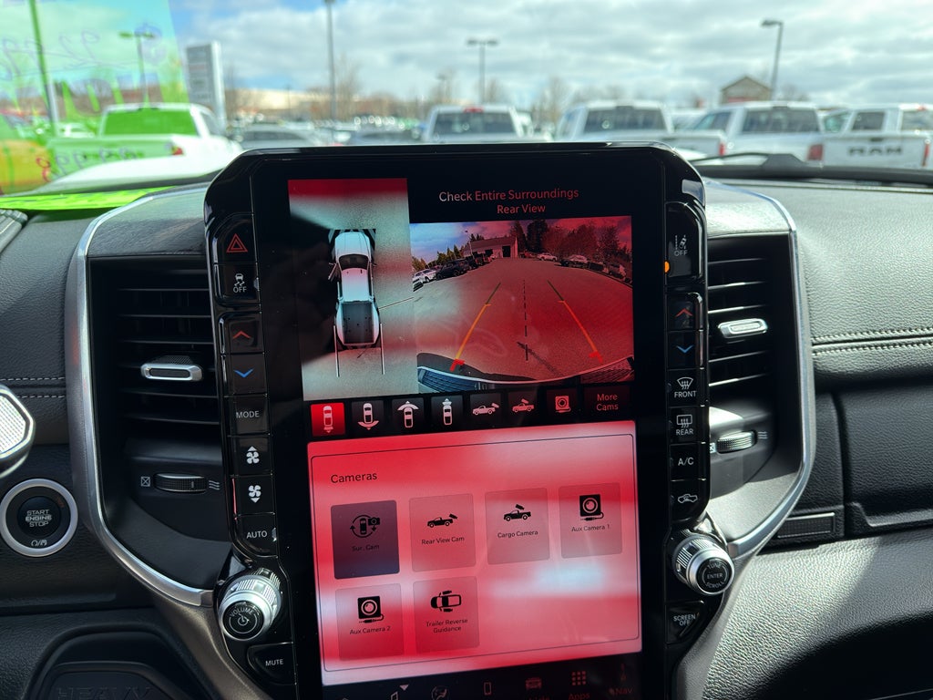 Quick Order Package 24H Laramie. Max Tow Package: Auto Level Rear Air Suspension; 5th Wheel/gooseneck Towing Prep Group. Night Edition. Towing Technology Group: Center Stop Lamp with Cargo View Camera; Surround View Camera System; Trailer Tire Pressure Monitoring System; Trailer Reverse Guidance. Laramie Level 2 Plus Equipment Group: Google Android Auto; SiriusXM Radio Service; Power Adjustable Pedals with Memory; For Details Visit DriveUconnect.com; For More Info. Call 800-643-2112; Integrated Voice Command with Bluetooth®; Emergency Vehicle Alert System (EVAS); Power Deployable Running Boards; Auto Power-Folding Mirrors; Drowsy Driver Detection; Mirror Running Lights; MOPAR Deployable Bed Step; Alexa Built-In; Apple CarPlay; Power-Adjustable Convex Aux Mirrors; Active Lane Management System; Forward and Reverse Utility Lights; Disassociated Touchscreen Display; Remote Tailgate Release; 17 Speaker Harman/kardon Premium Sound; 2nd Row in Floor Storage Bins; Center Stop Lamp with Cargo View Camera; Rain Sensitive Windshield Wipers; LED Bed Lighting; Connectivity - US/Canada; Traffic Sign Recognition; GPS Navigation; 4G LTE Wi-Fi Hot Spot; Adaptive Steering System; GPS Antenna Input; Exterior Mirrors with Heating Element; Auto Dimming Exterior Mirrors; SiriusXM with 360L; Global Telematics Box Module; Connected Travel and Traffic Services; Foam Bottle Insert (door Trim Panel); Off-Road Information Pages; Selectable Tire Fill Alert; Trailer Tow Pages; Leather Trimmed Bucket Seats; HD Radio; 14.4" Touchscreen Display; Power Heat Fold Memory Telescopic Mirrors; Exterior Mirrors with Supplemental Signals; Exterior Mirrors Courtesy Lamps; Uconnect 5 Nav with 14.4" Display; MOPAR Spray in Bedliner; Auto High Beam Headlamp Control; Chrome Exterior Mirrors; Exterior Mirrors with Memory; Power Adjust Mirrors; Power Telescoping Mirrors; Auto Dimming Exterior Passenger Mirror; Auto Adjust in Reverse Exterior Mirrors. Dual Rear Wheels: Clearance Lamps; LT235/80R17E BSW All Season Tires; 17" Steel Spare Wheel; Box and Rear Fender Clearance Lamps; Center Hub; 6000# Front Axle with Hub Extension; Nexen Brand Tires; 14. 000 Lb GVWR. Auto Level Rear Air Suspension. Power Sunroof. Power Deployable Running Boards. 5th Wheel/gooseneck Towing Prep Group. Leather Trimmed Bucket Seats. Center Stop Lamp with Cargo View Camera. 50 Gallon Fuel Tank. Instrument Panel Mounted Auxiliary Switches. MOPAR Front and Rear Rubber Floor Mats. Clearance Lamps. Transfer Case Skid Plate Shield. **Equipment listed is based on original vehicle build and subject to change. Please confirm the accuracy of the included equipment by calling the dealer prior to purchase.**